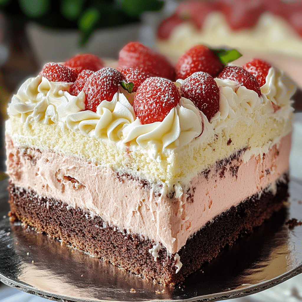 What truly sets this cake apart is its versatility. Whether you’re preparing it for a festive celebration, a special gathering, or a simple treat for yourself, it never fails to impress with its elegance and complexity. The soft, mousse-like filling pairs beautifully with the buttery cake layers, making it a showstopper at any table.