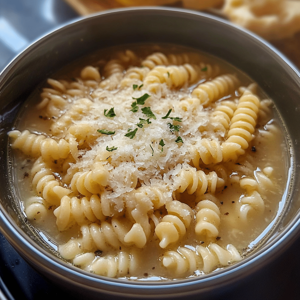 I first made this dish on a chilly evening when I was craving something both comforting and wholesome. The bone broth, packed with nutrients and flavor, gives the pasta a heartwarming base that is both soul-soothing and filling. The Parmesan adds a delightful tang, enriching the broth’s natural umami and making every bite feel luxurious. The pasta, tender and perfectly cooked, soaks up all the deliciousness, tying the dish together in a way that feels both simple and elegant.