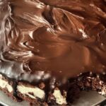 8. Glaze the Cake: Pour the chocolate glaze over the pudding-filled cake, spreading it evenly across the top.