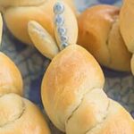 6. Shape Bunny Buns: Once risen, punch down the dough. Separate it into 12 small balls for the buns. Shape two pieces of each ball into bunny ears and attach them to the body.