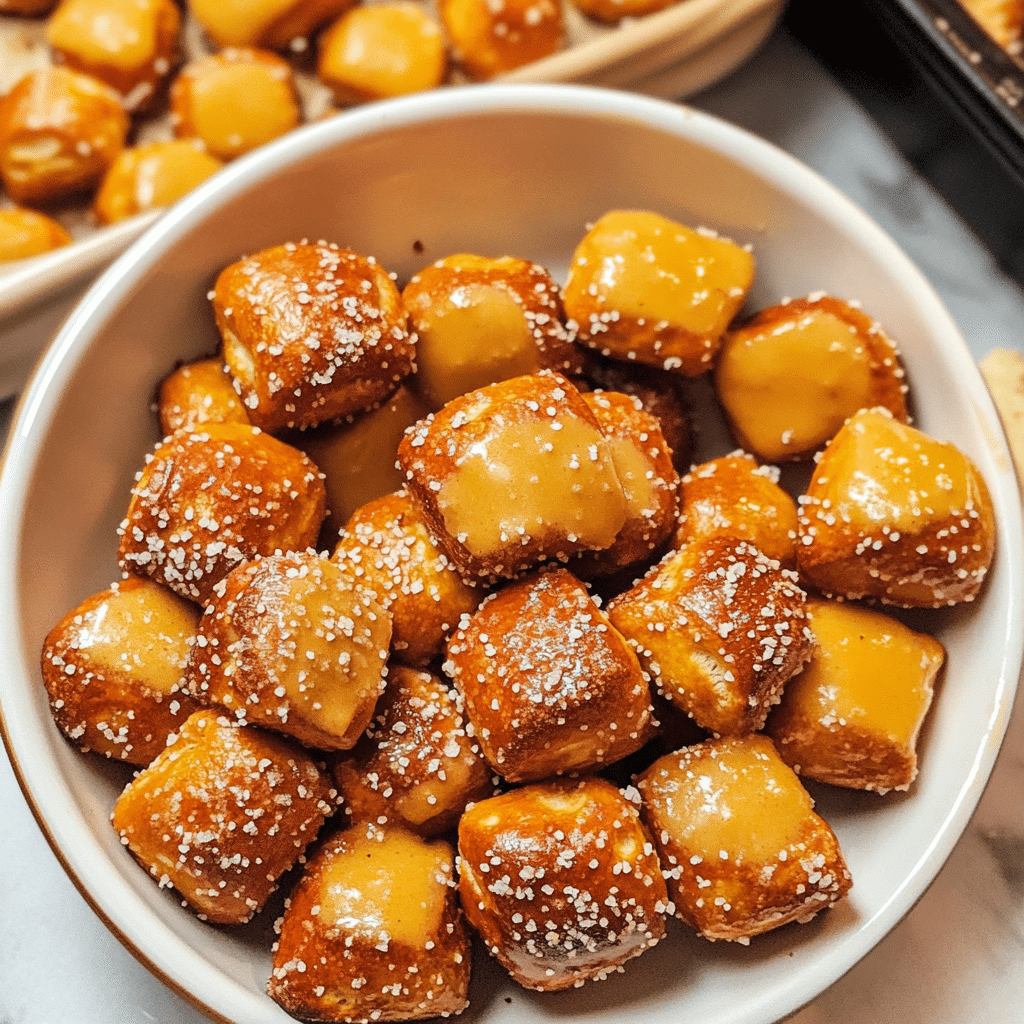 - Garlic Parmesan Pretzel Bites: After baking, brush with melted butter and toss with garlic powder and grated Parmesan cheese.