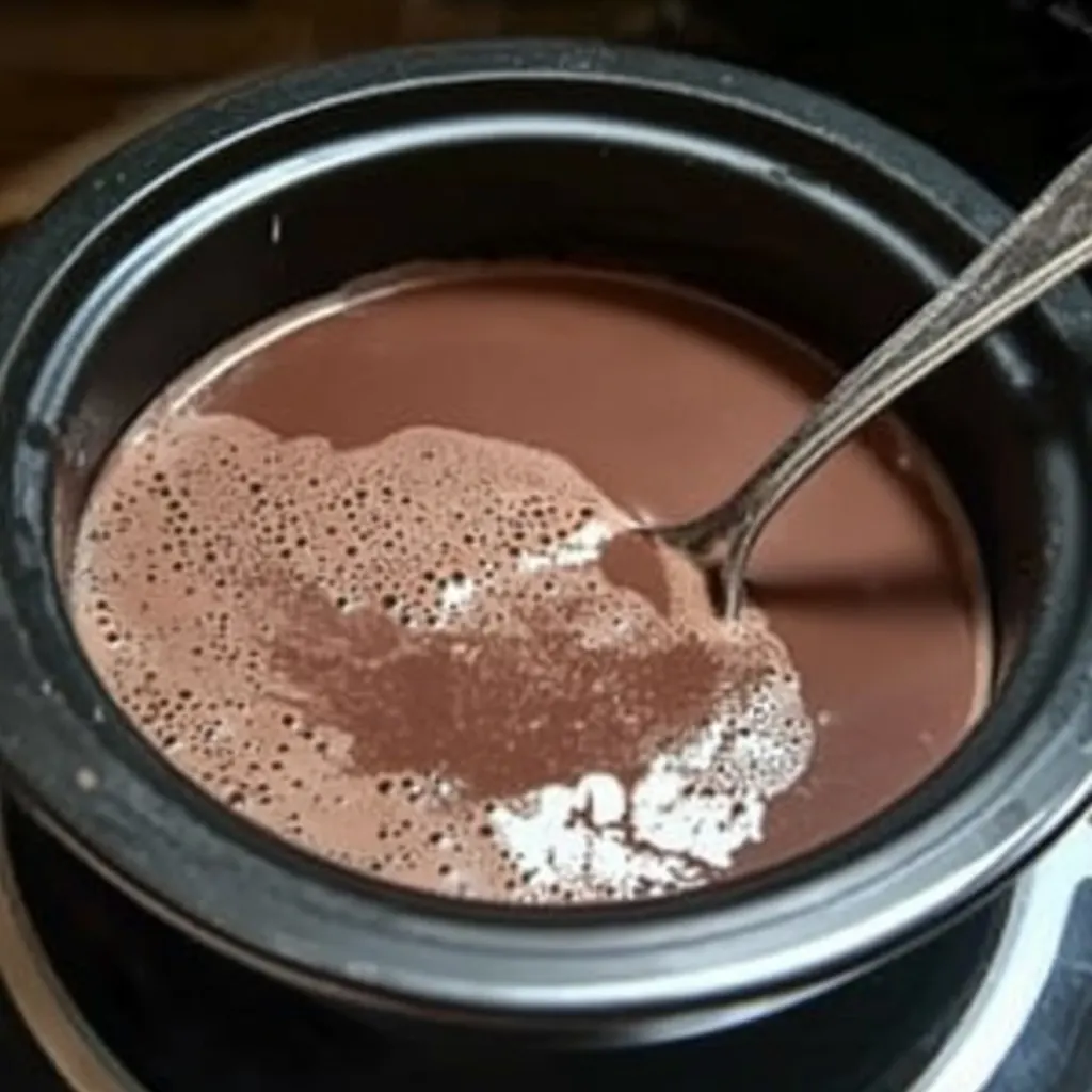 4. Pour into Crockpot: Transfer the chocolate mixture into the prepared crockpot, spreading it evenly.