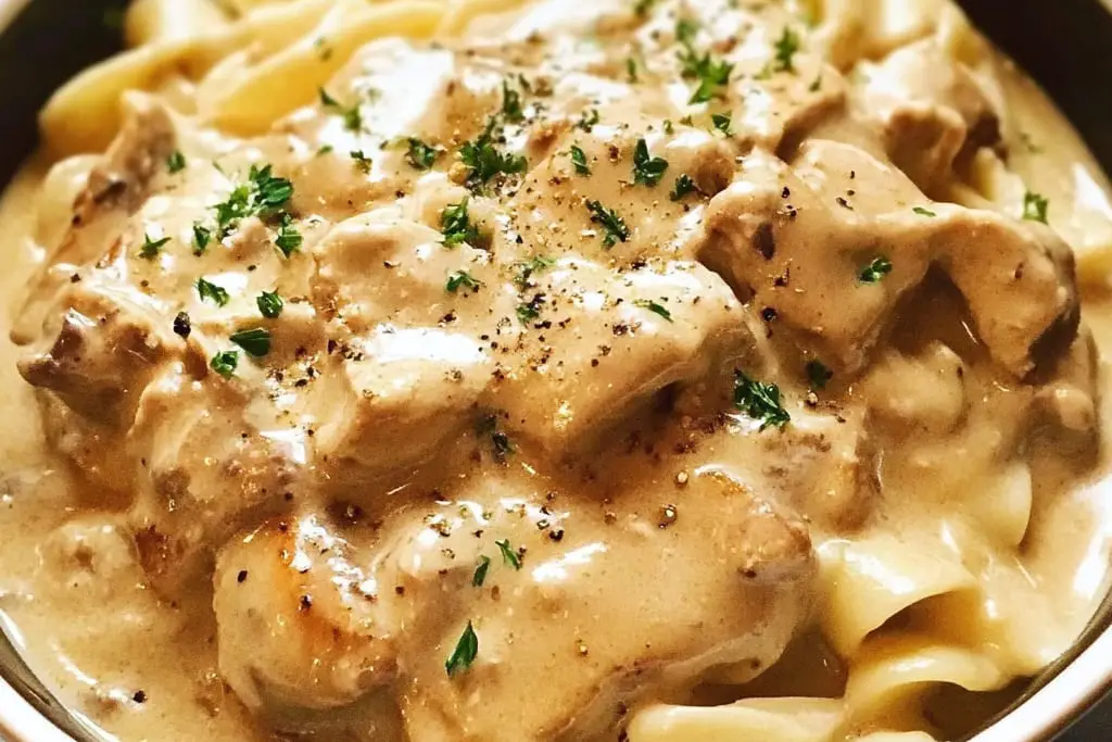 8. Serve: Spoon the stroganoff over your choice of noodles, rice, or potatoes, and garnish with fresh parsley if desired.