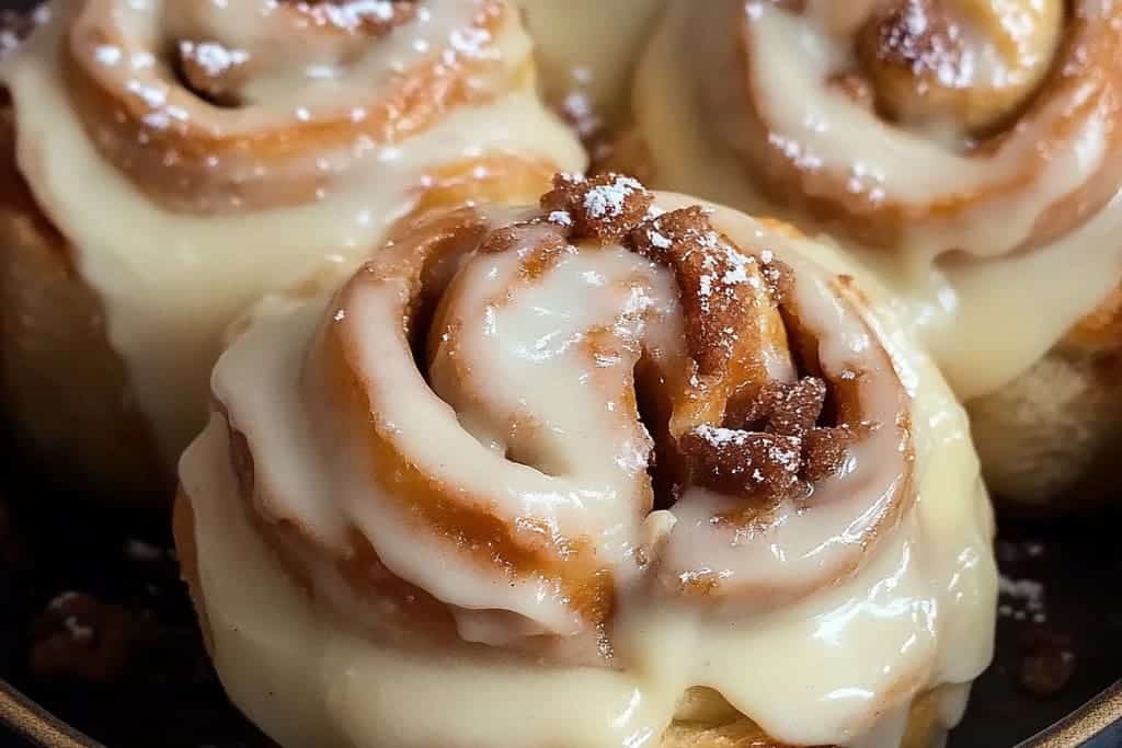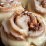 12. Glaze the Rolls: Once baked, remove the rolls from the oven and drizzle the frosting over the warm cinnamon rolls.