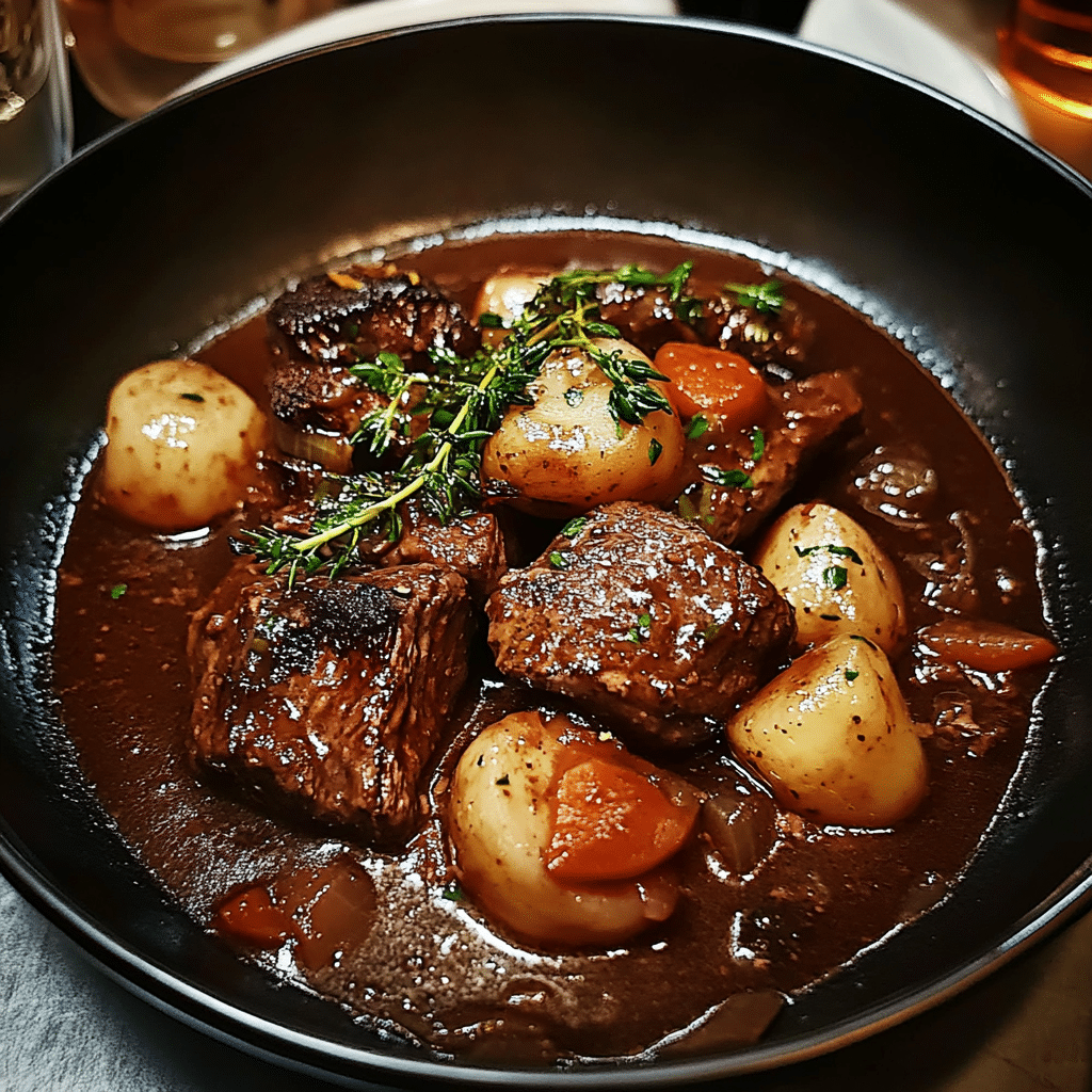 French Beef Bourguignon (Boeuf Bourguignon) is the epitome of rustic, slow-cooked comfort food that feels both hearty and elegant. This classic dish combines tender chunks of beef, rich red wine, smoky bacon, and a medley of aromatic vegetables into a deeply flavorful stew. Every bite is a perfect harmony of savory, earthy, and slightly sweet notes that make this dish a timeless favorite.