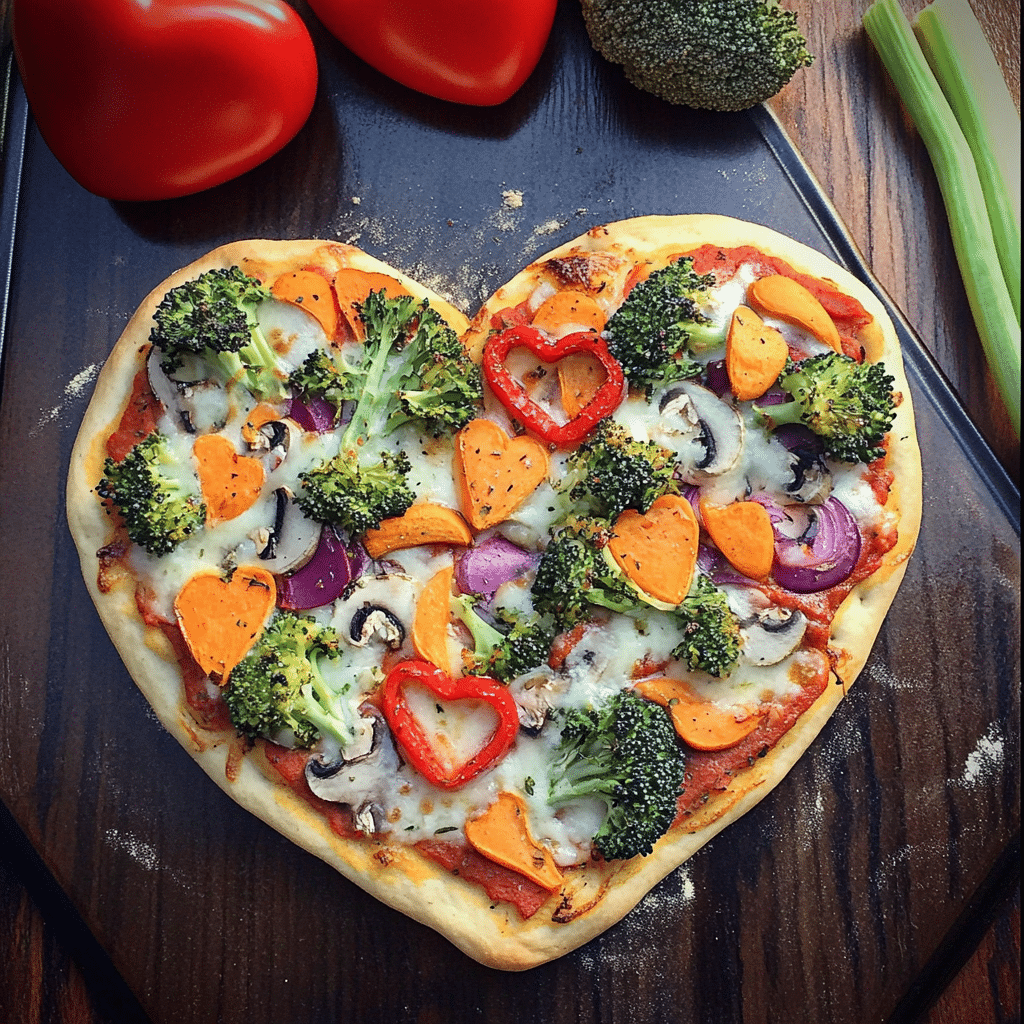 Heart-Shaped Valentine Vegetable Pizza