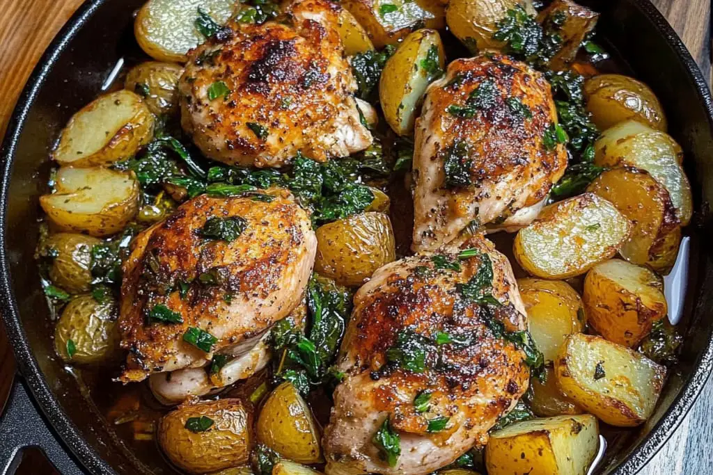 – Ensure Even Cooking: Cut potatoes into uniform pieces to ensure they cook evenly alongside the chicken and greens.