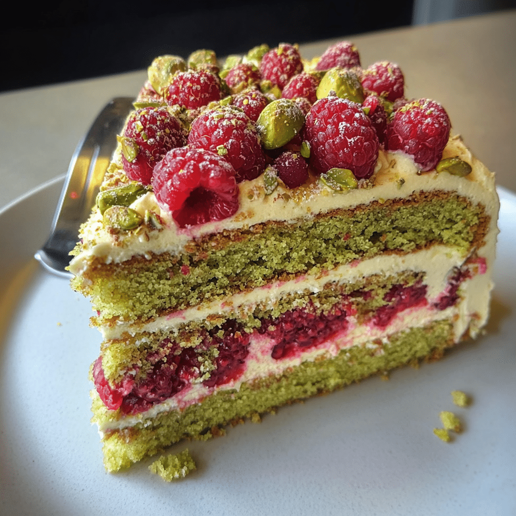 - Impressive Presentation: The beautiful color contrast between the green pistachios and vibrant raspberries makes this cake a showstopper.