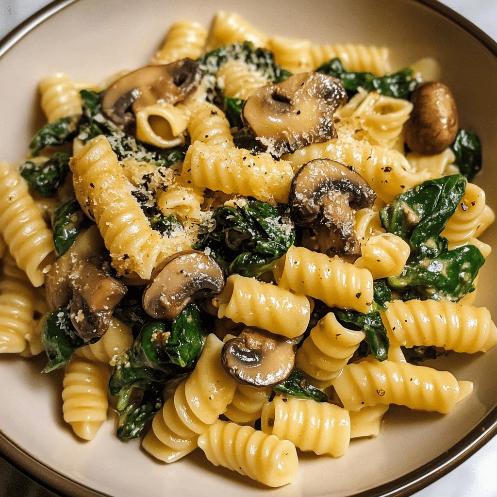 This recipe is close to my heart because it’s one of the first dishes I mastered when learning to cook. The sizzle of mushrooms hitting a hot pan, the aroma of garlic, and the way the spinach wilts perfectly into the sauce—it’s pure magic. Adding the pasta to the creamy mixture and watching it soak up all the flavors is so satisfying. It’s a dish that feels like a hug in a bowl.