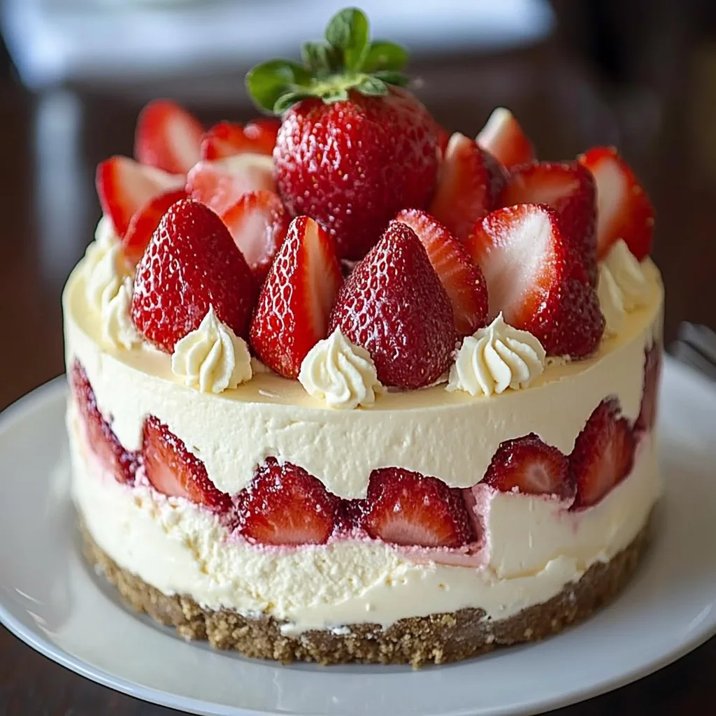 2. Stunning Presentation: The vibrant red of strawberries against the creamy white cheesecake makes for an eye-catching dessert.